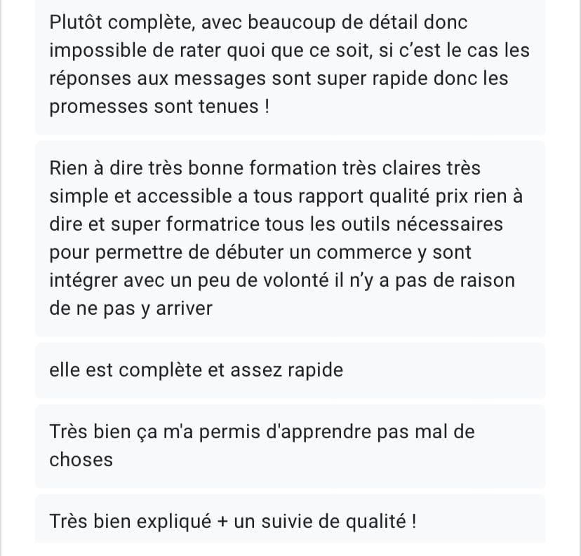 Nos formations se déroulent en ligne via cette plateforme de formation. Après l'achat d'une formation, vous recevrez un e-mail contenant vos identifiants pour vous connecter à votre espace "élève". Concernant les groupes d'échange et le suivi, ils se font via l'application WhatsApp.